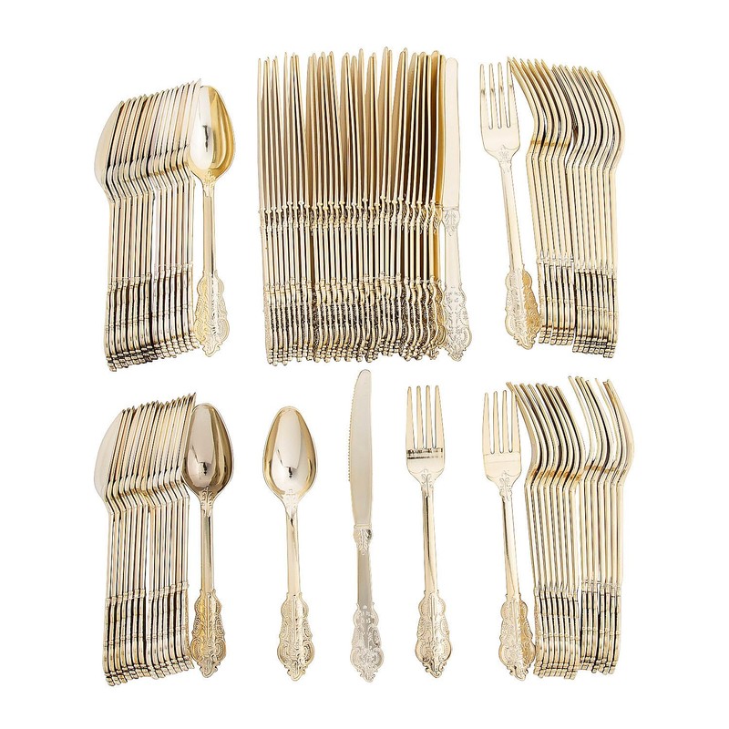 Bulk 96 Count Premium Ornate Gold Plastic Cutlery Sets