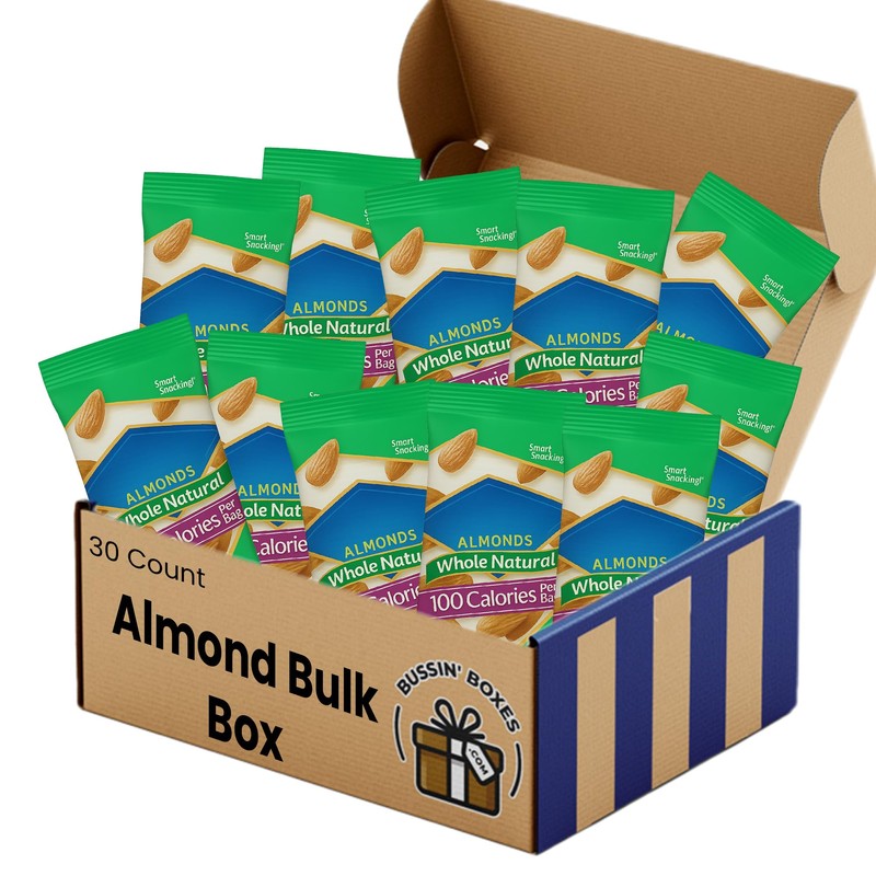 Almond Snack Packs – 30 Count 100 Calorie Nut Snack Bags – Bulk Individually Wrapped Roasted Almonds for School, Office, and On-the-Go Snacking Assembled by Bussin Boxes
