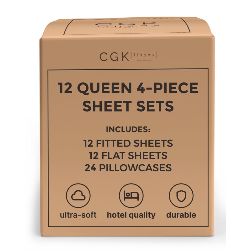 - EXCEPTIONAL VALUE: This 12-pack of queen size bulk sheet sets includes 12 complete sets Each set contains 2 pillowcases, 1 flat sheet and 1 fitted sheet. This is a REAL (and remarkable) wholesale value!