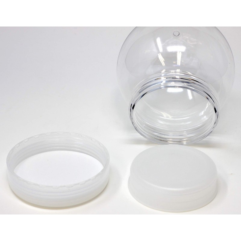 - SHATTER PROOF -Snow Globe is clear and sturdy plastic with 3 Inch wide screw off bottom cap and 2.375 Inch Inner Seal.