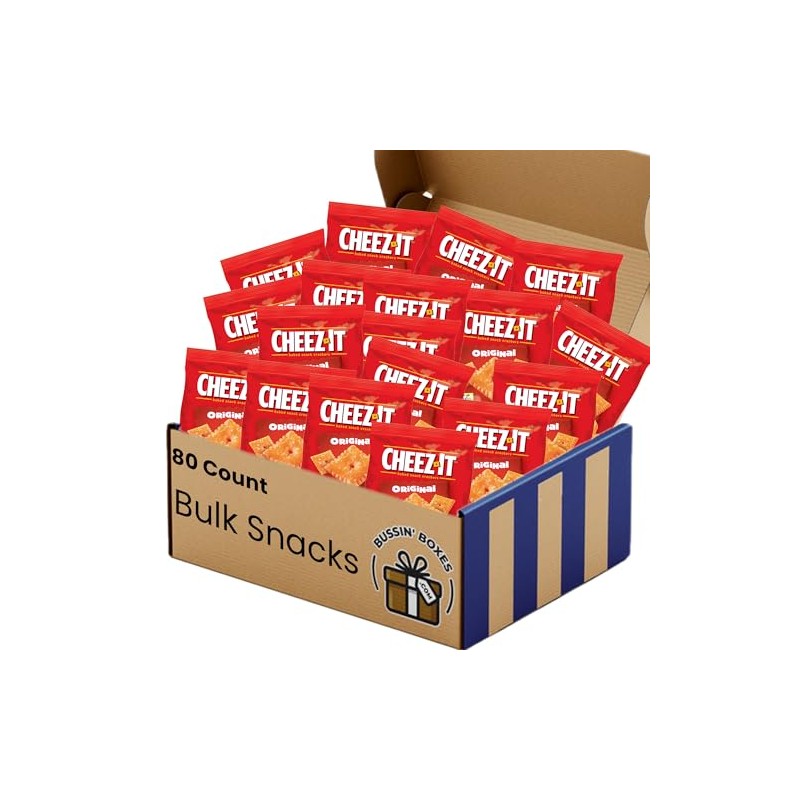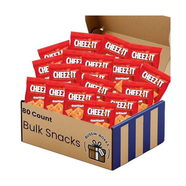 - Cheez-it Original Cheddar Cracker Snack Packs: Includes 80 individual snack-sized bags by Bussin Boxes. Ships in the classic Bussin Box!