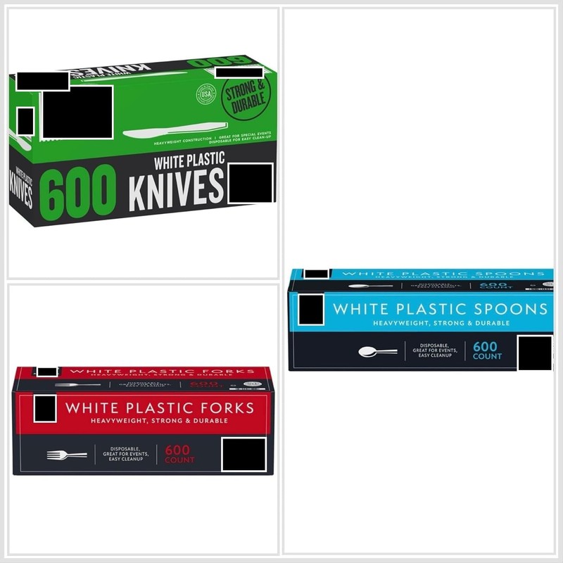 Bulk Heavyweight White Plastic Durable Forks, Spoons, & Knives Set -Bundle of (600 each box)