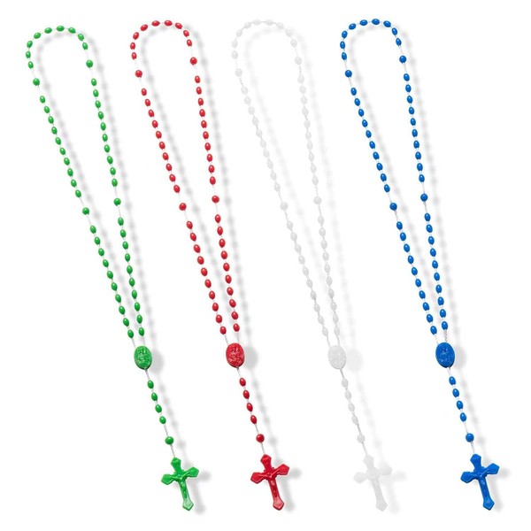 ZYFLSQ Bulk Plastic Rosary Beads Catholic 12 Pack, 17 Inch Assorted Rosary 4 Colors