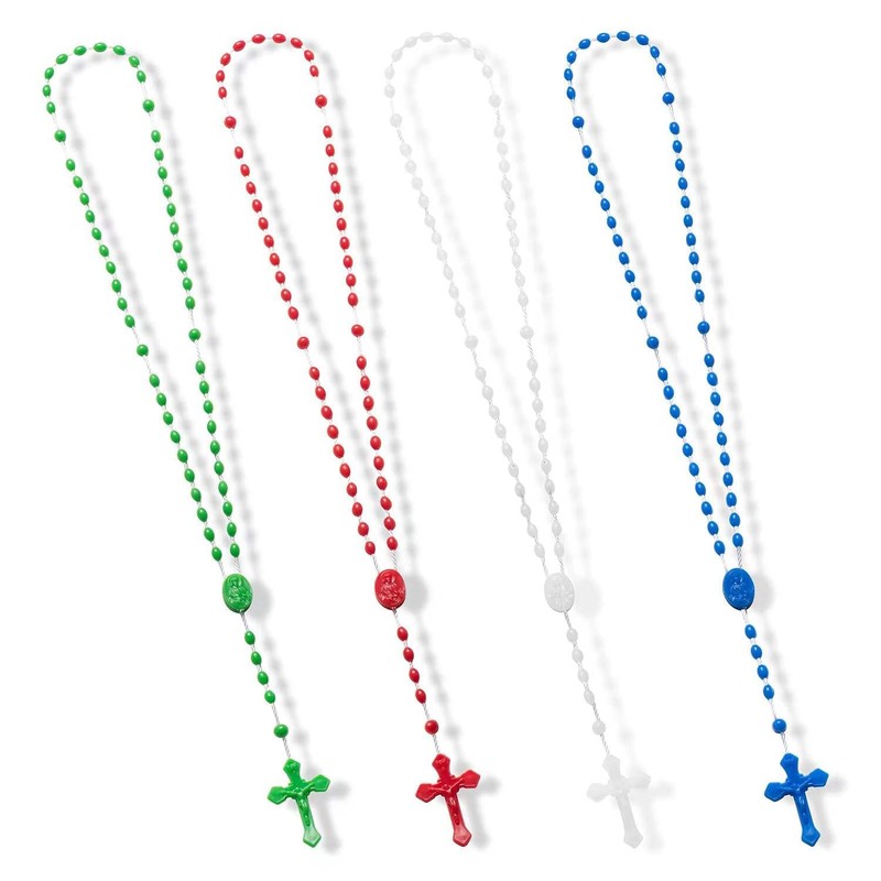 - Color: Plastic rosary are four different colors, blue, red, green and glow in the dark, Three strips of each color