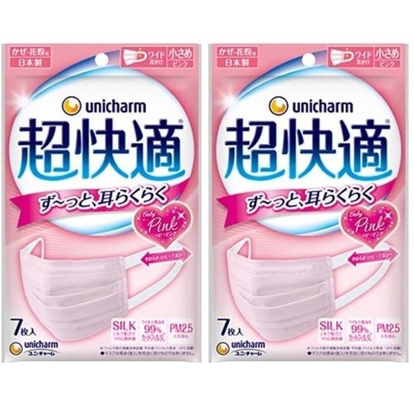 [Bulk Purchase] Uni Charm "Super Comfortable Mask" Pleated Type Made in Japan PM2.5 Compatible with Silk Blend 3 Layers 7 Pieces x 2 Pieces