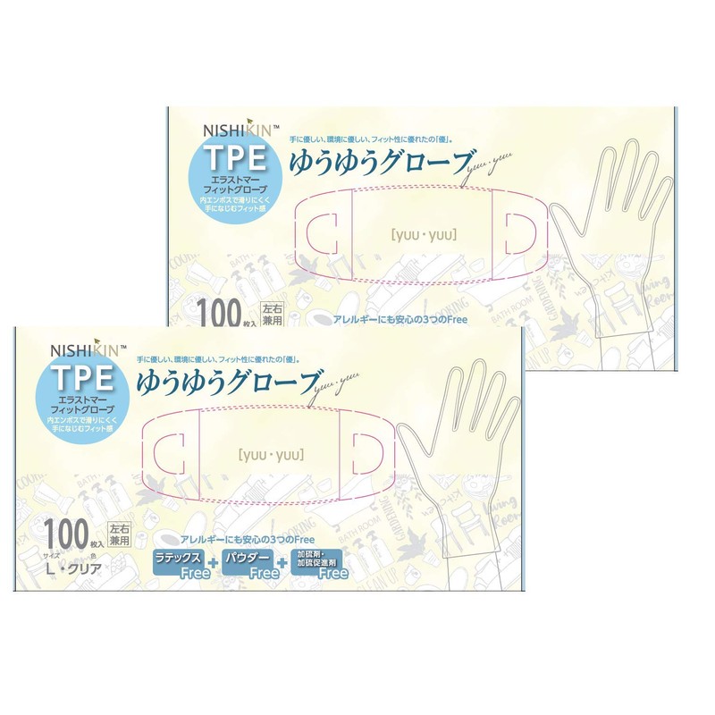 [Bulk Purchase] Yuyu Gloves, TPE Gloves, Large, 2 Pieces, Disposable for Left and Right Use