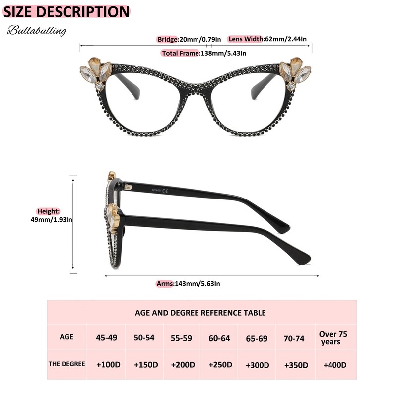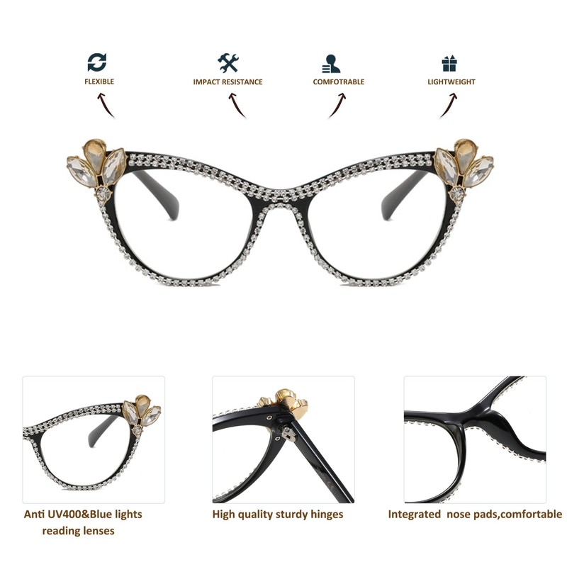bullabulling Bling Rhinestones Cat Eye Reading Glasses Crystal Diamond Frame ...