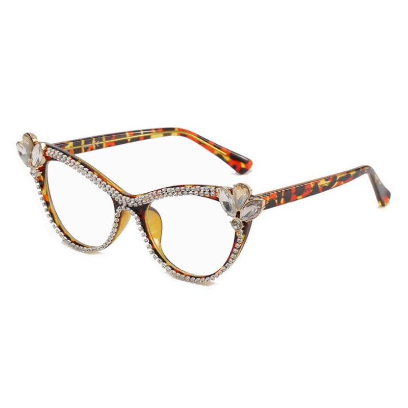 bullabulling Bling Rhinestones Cat Eye Reading Glasses Crystal Diamond Frame Eyewear Blue Light Blocking (demi, 2.0)
