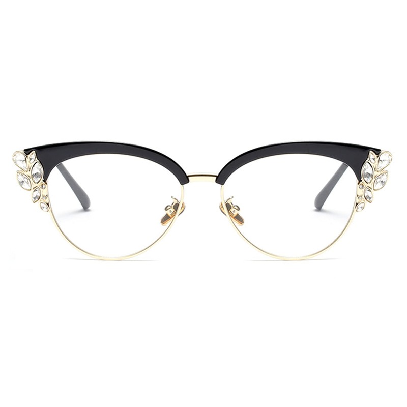 bullabulling Rhinestones Bling Bling Cateye Reading Glasses Women Blue Light Blocking (black, 1.5)