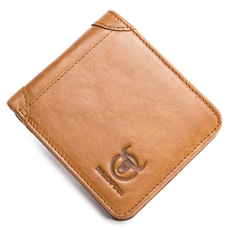 BULLCAPTAIN Men's Genuine Leather RFID Trifold Wallet with 2 ID Window Credit Card Holders Wallets, yellow brown, Casual Fashion