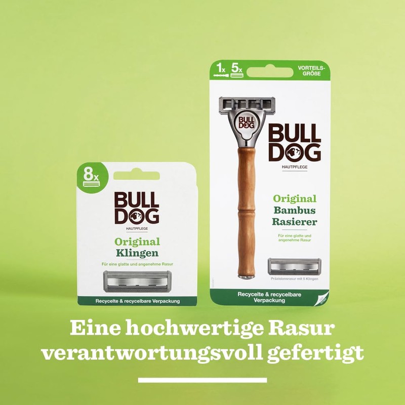 BULLDOG - Nassrasur für Männer | Original Rasierer mit Bambusgriff | Rasierer + 4 Ersatzklingen | 5-fach Klinge