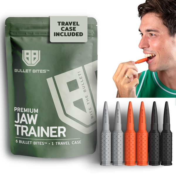 • UNMATCHED DURABILITY - Experience jaw exercise supremacy with our exclusive 6-bullet bite jaw trainer kit. Each meticulously engineered bullet ensures prolonged and effective workouts when compared to other products. Outlast the competition and endure more exercise sessions. Transform your jawline with confidence. ADD TO CART now. BITE THE BULLET!