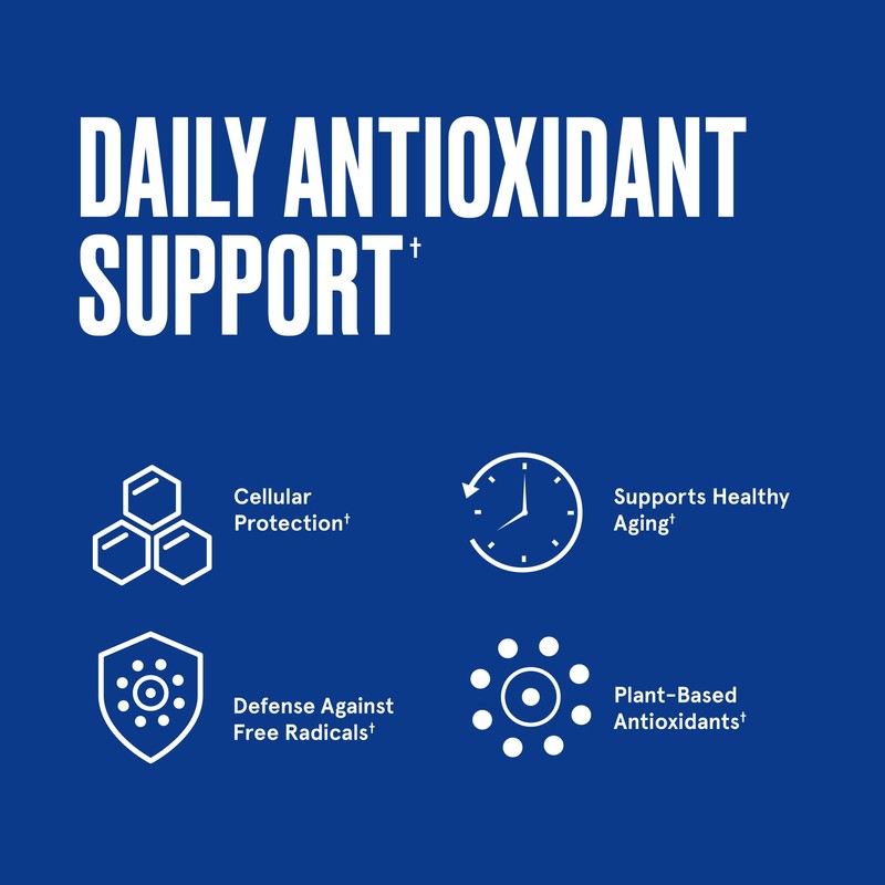• A daily dose of plant-based antioxidants that help fight free radicals and support healthy aging, along with immunity and cell protection