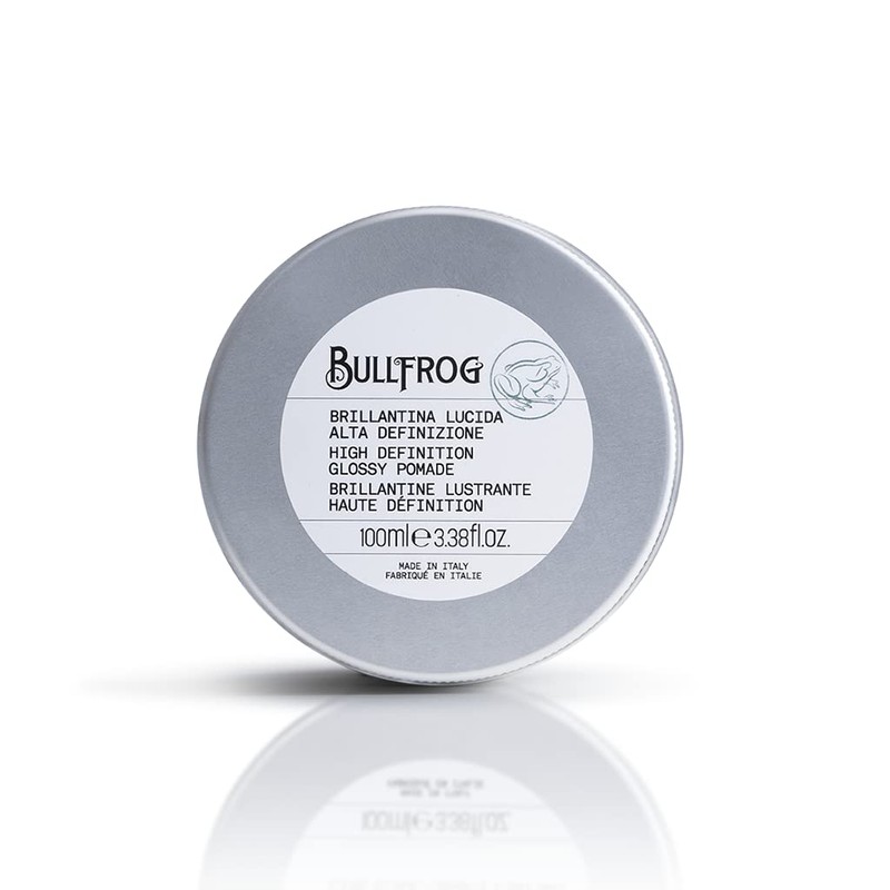 The Bullfrog High Definition Glossy Pomade is a glassy paste that provides an extremely strong hold without weighing the hair down. Its elastic water-based composition makes the hair restyleable all day long. It is very easy to remove and leaves no residue. The right balance of the surfactants makes it possible to create a film with high adhesion on the hair, highlight its brightness and ensure a strong styling effect. In addition, the lack of mineral oils is the secret that ensures a perfect hold. The fragrance selected for this product is reminiscent of the feeling of the classic Barber product thanks to its aromatic notes.