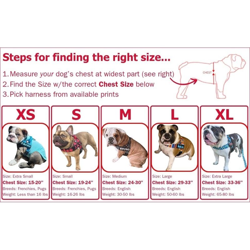 - Goes on Easy! Unlike other dog collars, harnesses & leashes BULLHUG is incredibly easy to put on your English Bulldog, French Bulldog or Pug. Just slip it over your Squishy face dog's head, and clasp the heavy-duty fast-release plastic side release buckle. A secure dog walking harness you can trust.