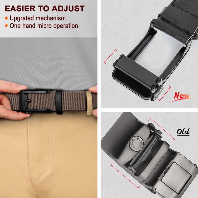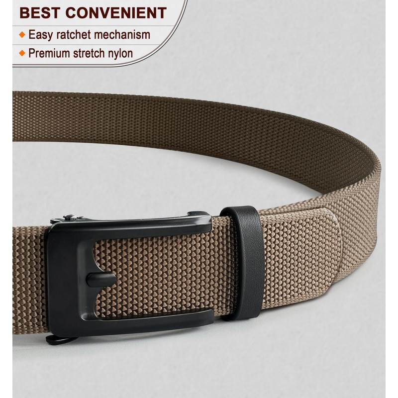 - EXACTLY FIT -- Creative design for completely free adjustment,This BULLIANT Casual Belt is structured with a special ratchet buckle,its particular grip mechanism can lock in the nylon strap directly.with this belt,you can get any precise fit you want,no holes or ratchet steps in between.even nore,you can get the full adjustment from head to end of the strap without limit;