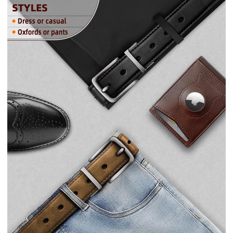 - BUILT TO LAST -- Crafted from genuine leather with reinforced double-edge stitching, Zinc-alloyed buckle is well coated for scratch resistance.This solid Bulliant belt maintains it's style and comfort with time;
