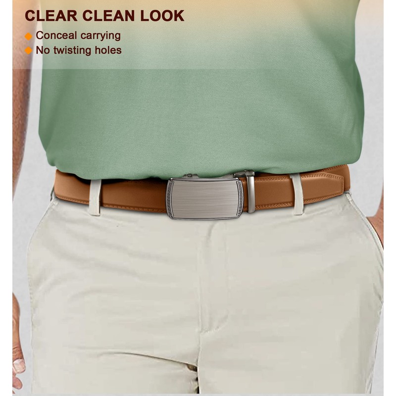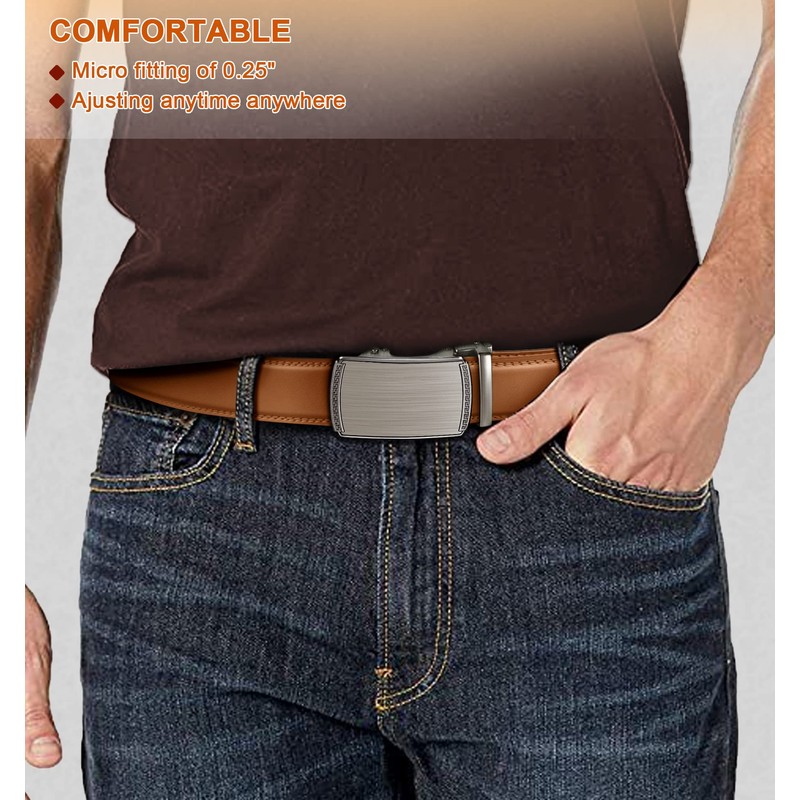BULLIANT Men's Belt, Slide Ratchet Belt For Gift Men Dress Pant Shirt Oxfords,Trim To Fit(orange brown,34"-40" Waist Adjustable)