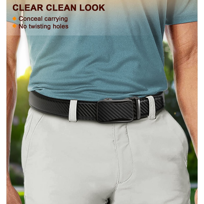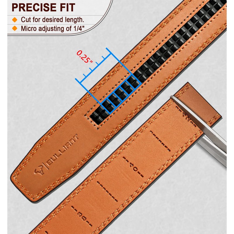 BULLIANT Men's Leather Belt Automatic Buckle Ratchet Belt Suit 35 mm Without Buckle Size Adjustable, Black3233