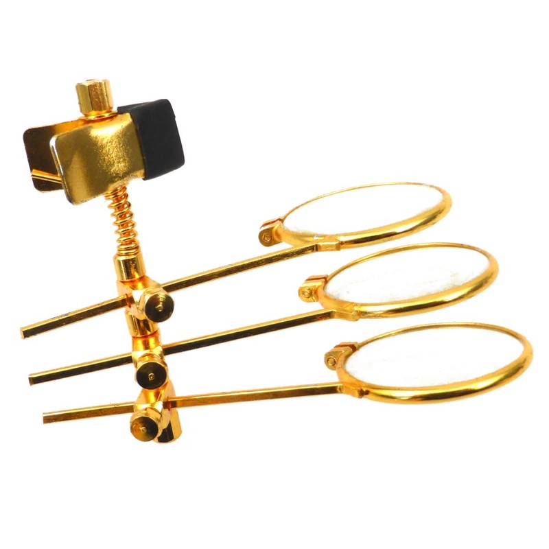 - The spring loaded clip holds the magnifying glass firmly on the glasses. 24 mm glass lenses with gold-plated steel frame.