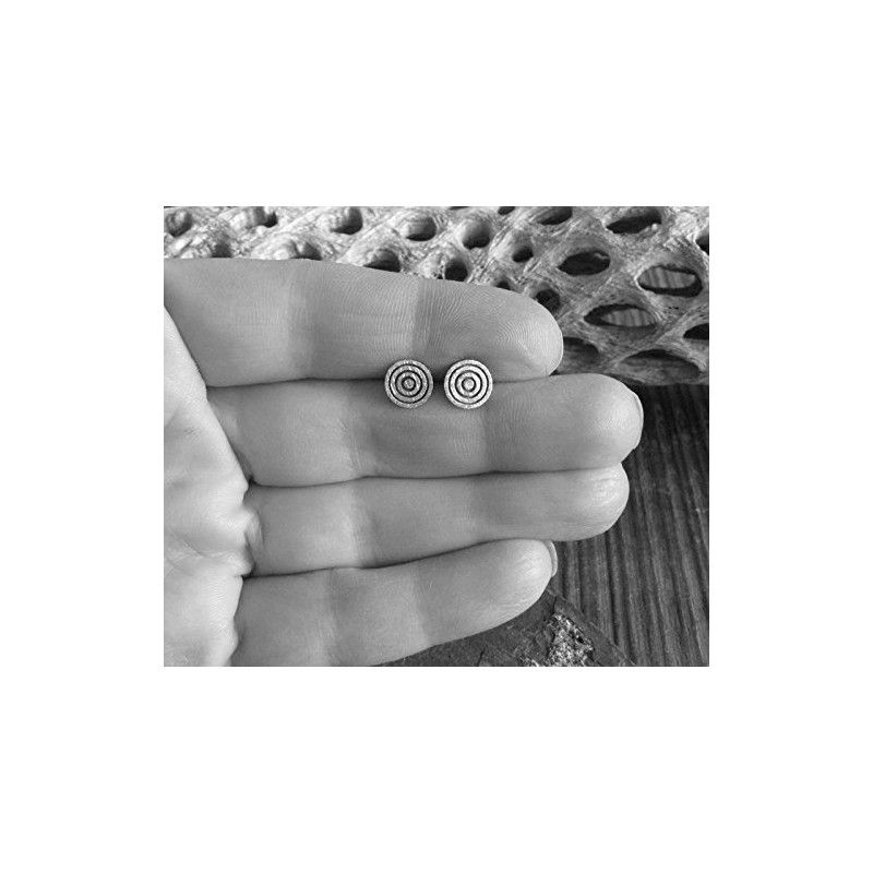 Bullseye Target Polished Sterling Silver Stud Earrings Handmade in USA