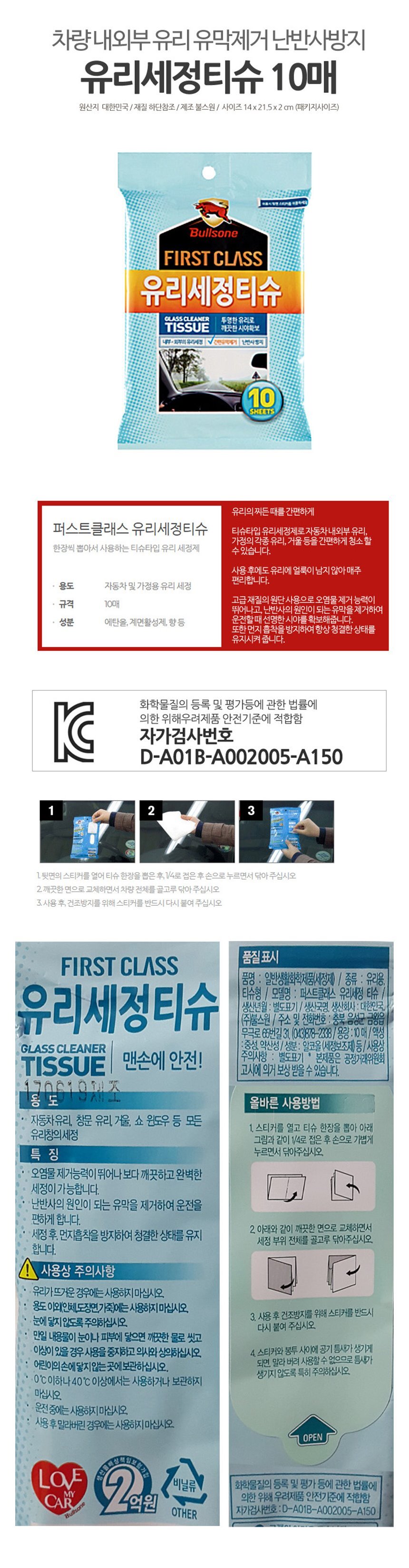 Bullsone Glass Cleaning Wipes 10 sheets 2ea