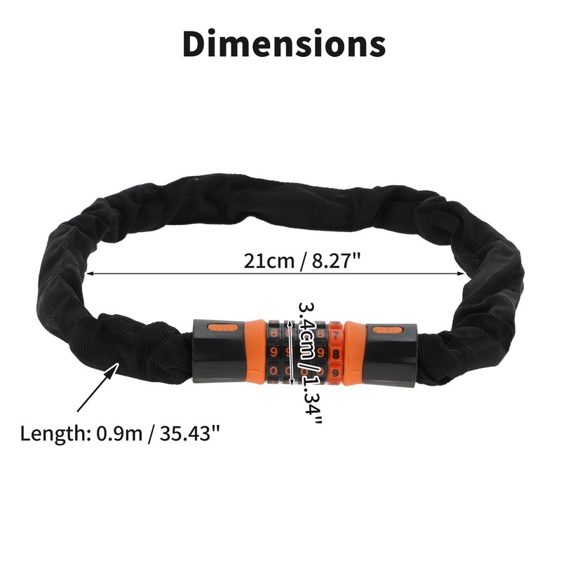 BULLSPANN 0.9 m Universal Security Bicycle Lock, Rustproof Bicycle Chain Lock with 5-Digit Combination Code for Road Bike, Mountain Bike, Electric Bicycle, Black Orange