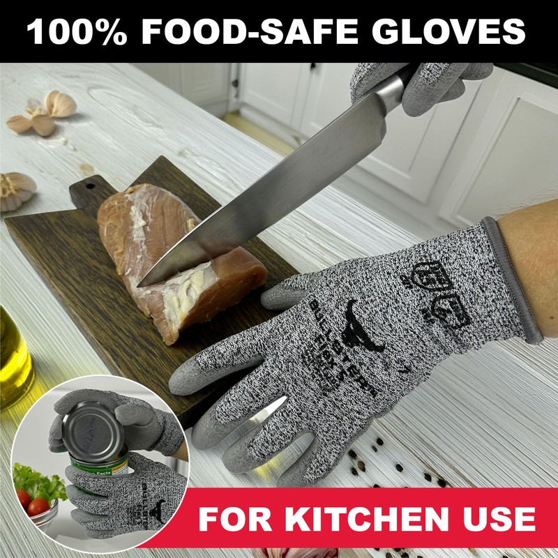 - 100% FOOD SAFE: Cut proof outdoor gloves designed for cooking, these versatile food-prep gloves are perfect for carving, filleting, grating, and more. Heat and cut resistant gloves made from food-safe materials and built with cut resistance, our food-handling gloves deliver safety and peace of mind in both culinary and industrial settings.