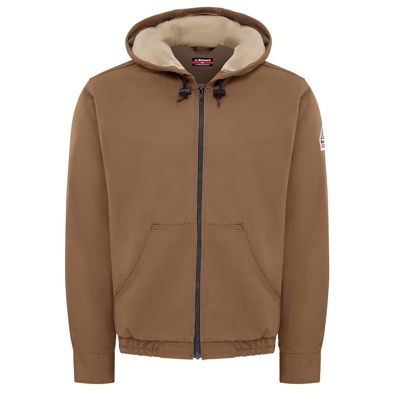 Bulwark FR mens Bulwark Men's Heavyweight Fr Brown Duck Hooded Jacket work utility outerwear, Brown Duck, Large US