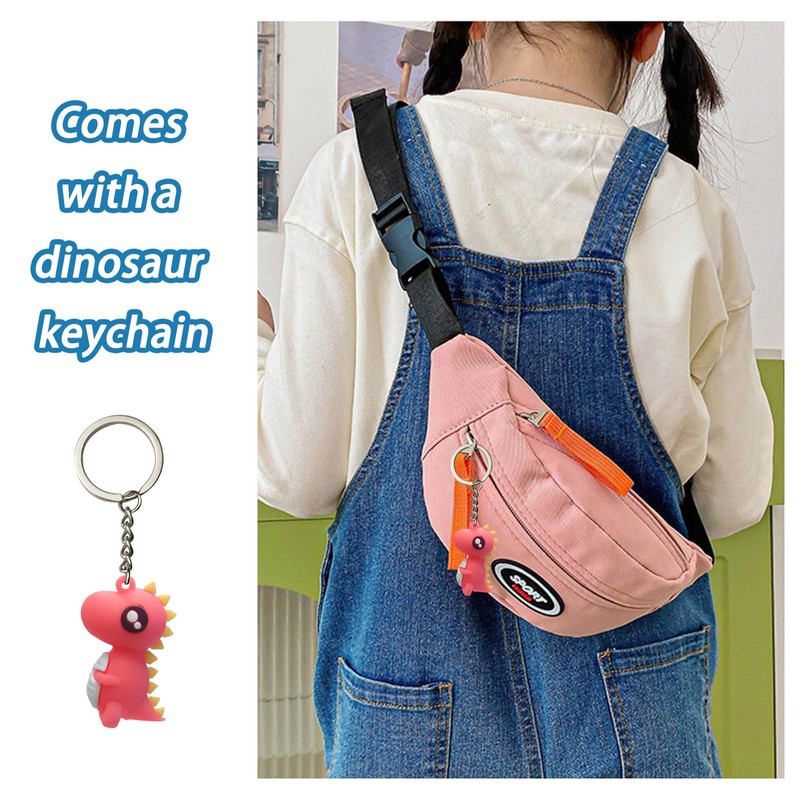 Bum Bag Kids Neck Pouch Girls Boys Shoulder Bag with Dinosaur Pendant, pink, Modern