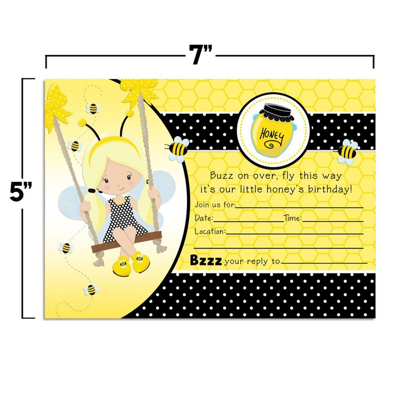 - Awesome Quality: Forget smaller, chintzier cards printed on flimsy paper. At 5"x7" your Bumble Bee Invites are bigger & sturdier than most. Plus, they're printed on 80# stock for ultra durability.