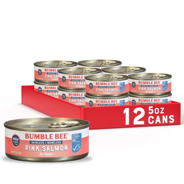 Bumble Bee Skinless & Boneless Canned Pink Salmon 🍣 in Water, 5 oz Can (12 Pack) | *Free Shipping
