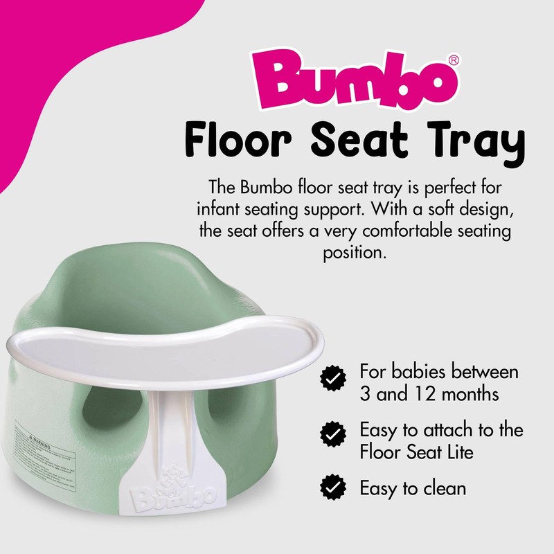 - Tray for Floor Seat: Specially designed tray made for the Bumbo Baby Floor Seat that slides on and off easily for use during feeding or playtime