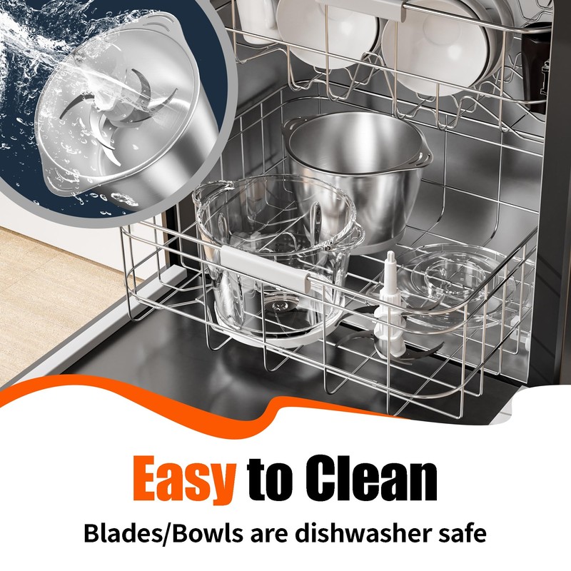 - Safe and Efficient: Equipped with a full copper motor, with a lifespan more than three times longer than ordinary motors,ensures the durability and stability of the electric chopper, importantly provides a safer for your family. The patented automatic stop design and blade spring loading mechanism effectively prevent accidents. this non-slip base and overheating protection system greatly ensure the stability and safety