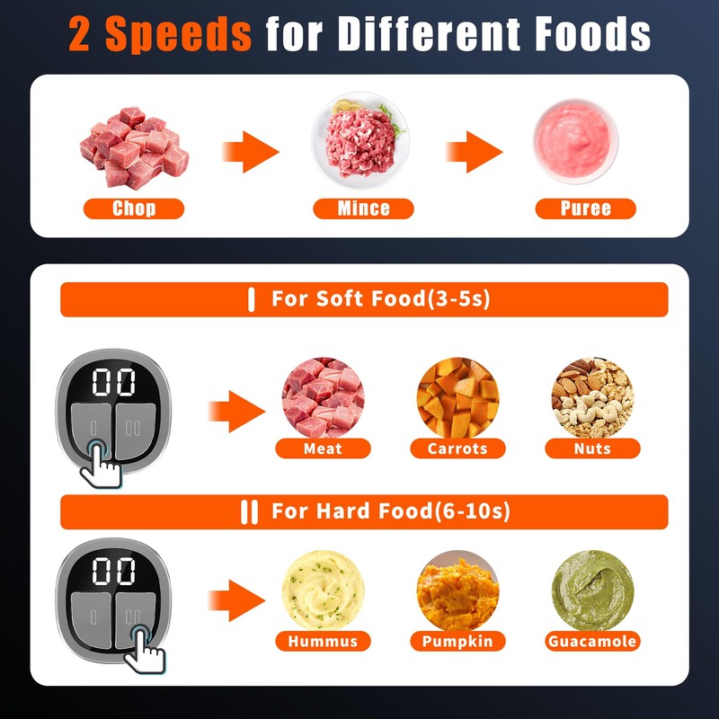 - Super Fast Food Processor With LED Timer: This powerful 800W meat grinder has super fast processing capabilities. the food processor can evenly chop ingredients only 6-10 seconds, saving valuable time and providing you with a more convenient kitchen experience, the unique LED timer show you the exact time of processing to make the progress more controllable.