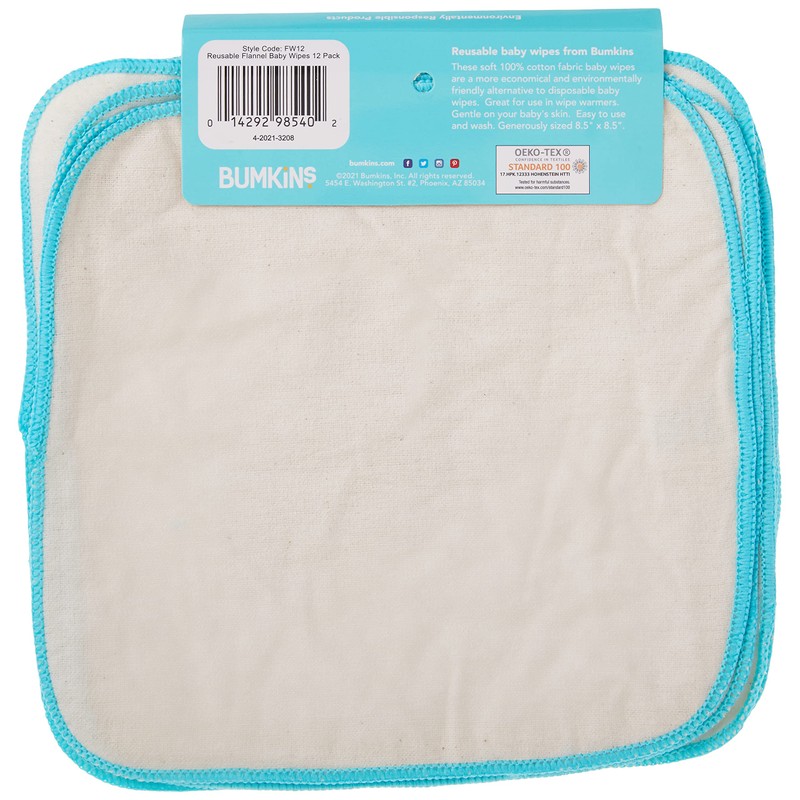 Bumkins Reusable Flannel Baby Wipes, 12 Count, Natural