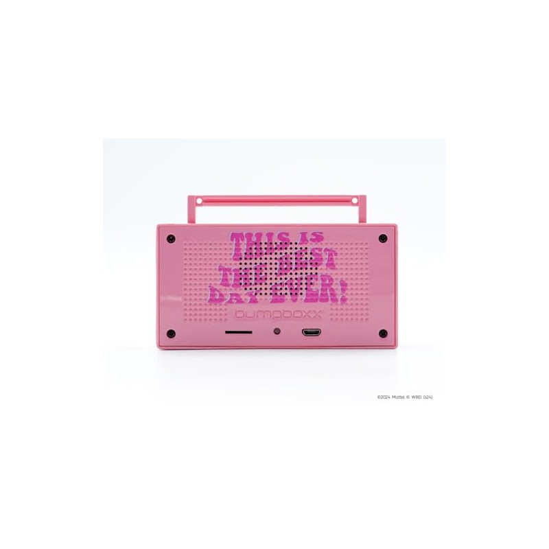 Say “Hi” to the Barbie The Movie x Bumpboxx Microboom. Join in on the spirit of fun and fashion, because your playlist deserves it. The Bumpboxx MicroBoom is a portable Bluetooth Speaker that seamlessly blends fashion & technology. Weighing in at only 3.7 ounces & smaller than a smart phone & much louder. The MicroBoom has the option to be worn on a necklace for hands free use. Connect to your bluetooth or use the SD card slot. You can Sync two units wirelessly in TWS mode giving you a left & right channel. Length: 5.29" | Width: 3.84" | Height: 2.33" | Weight: 10.21 oz.