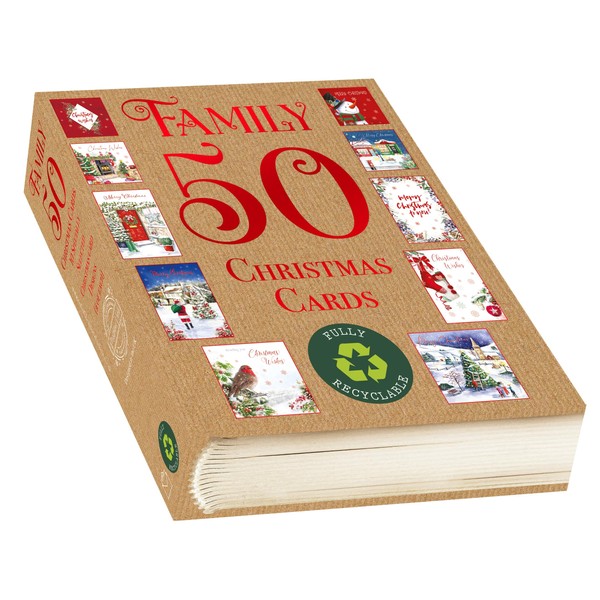 Bumper Box of 50 Family Christmas Cards - 10 Assorted Cute Traditional Designs