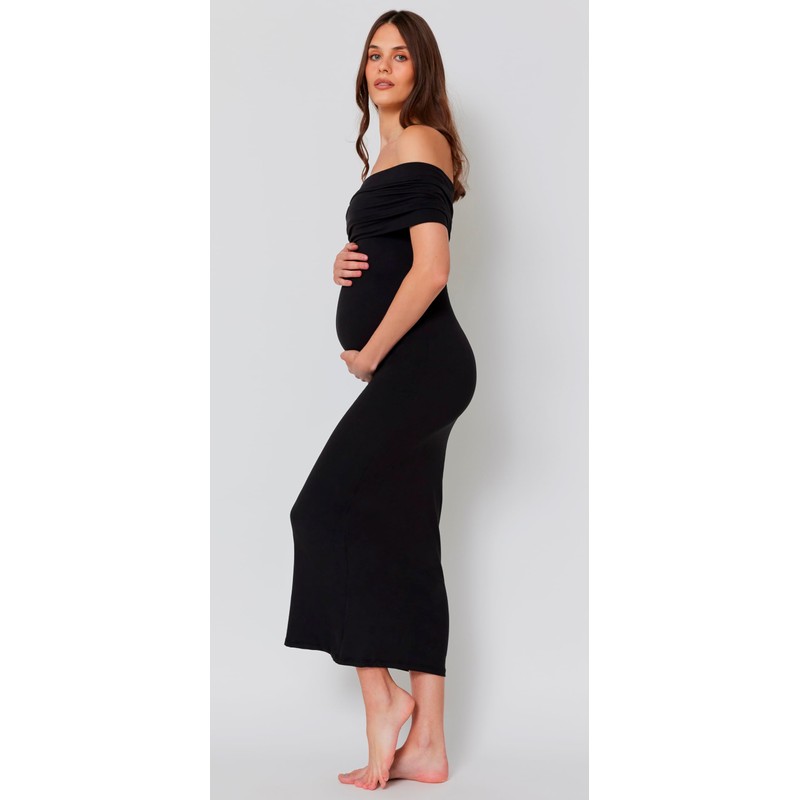 - Elegant Off Shoulder Maternity Dress: The Bianca black maternity dress offers a perfect blend of elegance and comfort, featuring an off-the-shoulder style that adds flair to your maternity dress collection.