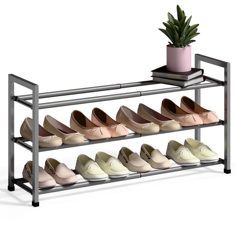 - EXPANDABLE SHOE RACK FOR CLOSET: Perfect for closet, this 3-tier shoe rack stretches from 18 to 33 inches and holds up to 12 pairs of adult shoes. Designed to freely stretch and adapt to your small space, ensuring a perfect fit with its easily adjustable length.