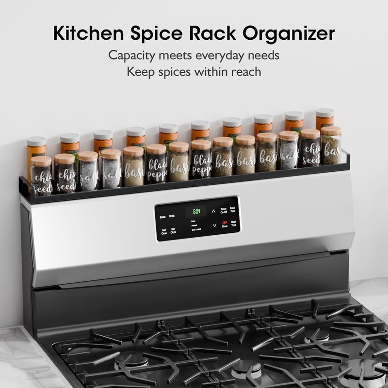 - 【Expand Your Kitchen Space】A spice rack designed for stovetops, placed above the cooktop to expand storage space and keep your spices within easy reach.