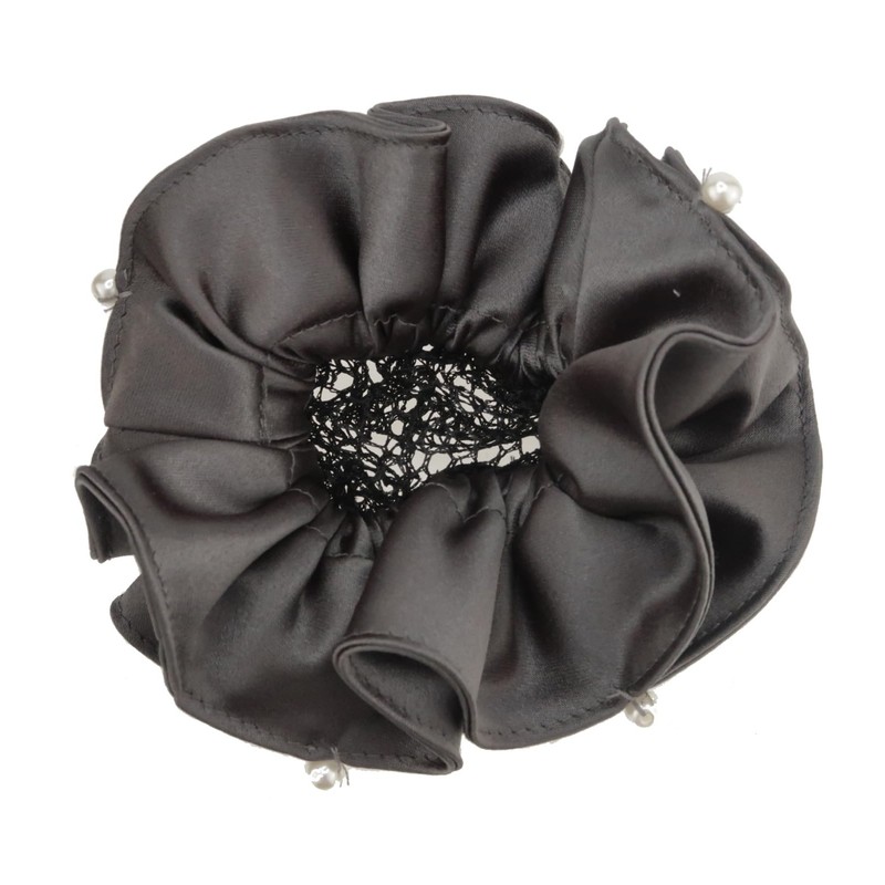 Bun Cover Chignon with Net Satin Pearl Young Look Elegant Gray