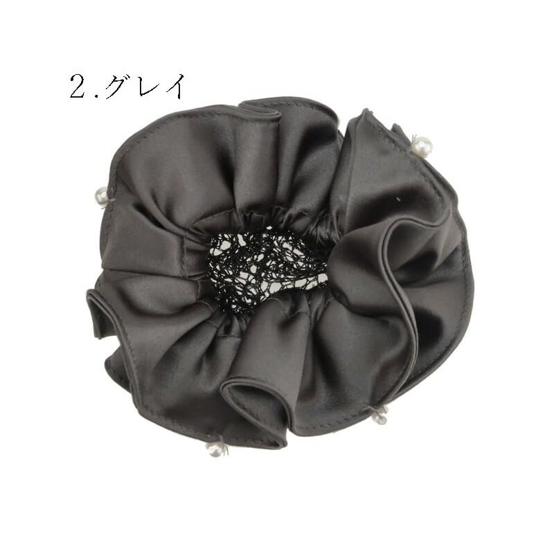 Bun Cover Chignon with Net Satin Pearl Young Look Elegant Gray