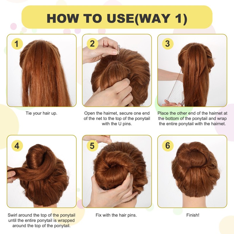 Product Includes: 30 hair nets, 40 U-shaped clips, 5 elastic hair bands
