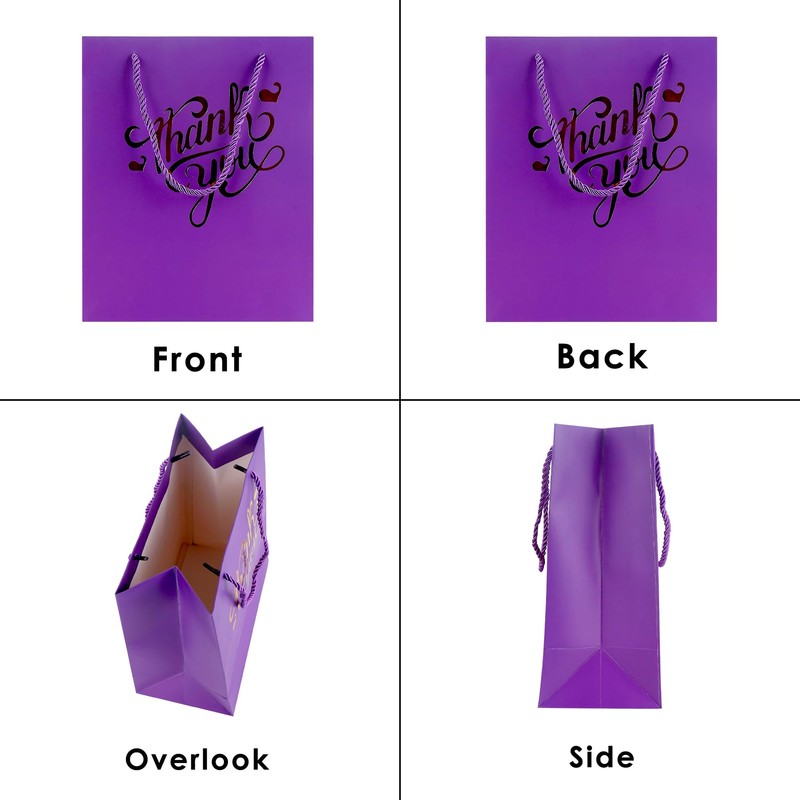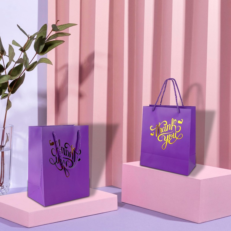 BUNCHBRAVO 12 Pack Purple Gift Bags Set with Gold Foil Thank You Letters – Cardstock Paper Bags with Handles for Business Wedding Shower Party Favor