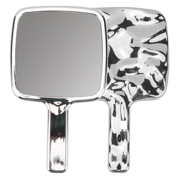 BUNCHBRAVO Compact Hand Mirror - Water Ripple Design, Square Handheld Vanity Mirror for Makeup and Styling, 5.1 x 9 Inches, Silver