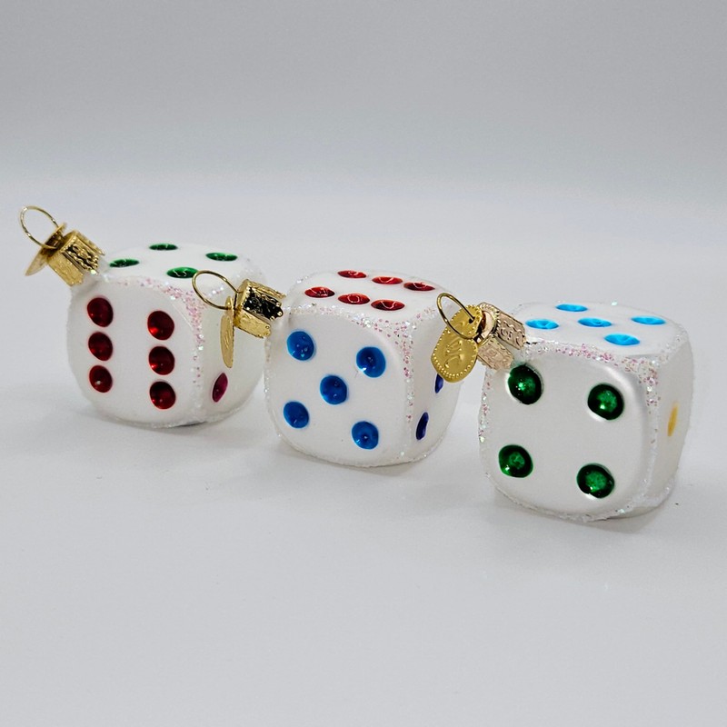 Bunco Dice Ornaments Set of 3 Two Inch Casino Dice Ornaments - Glass Dice Ornament for Bunco Parties