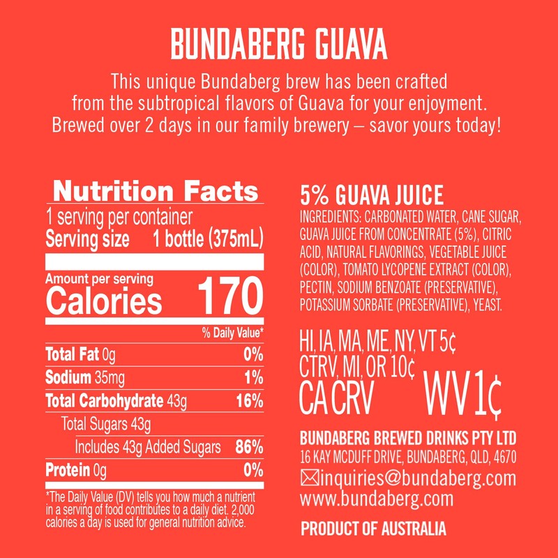 Bundaberg Sparkling Fruit Drink, Guava, 12.7 fl oz, 4 Count