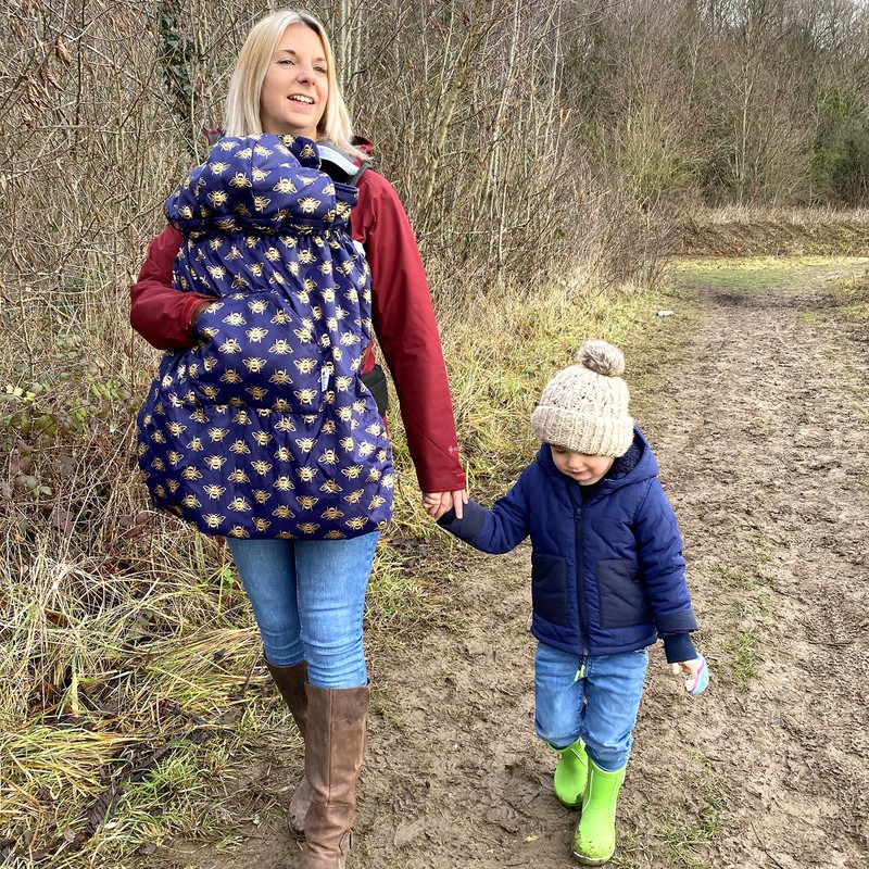 This is our all weather solution for year round babywearing – designed to help you carry your little ones whatever the weather and for as long as you can! It is made of soft waterproof fabric backed in fleece. Wider and longer than our other products it fits comfortably over all ages from baby to toddler – and on all types of carrier from woven wraps and buckle carriers, through to back carriers and rucksacks.