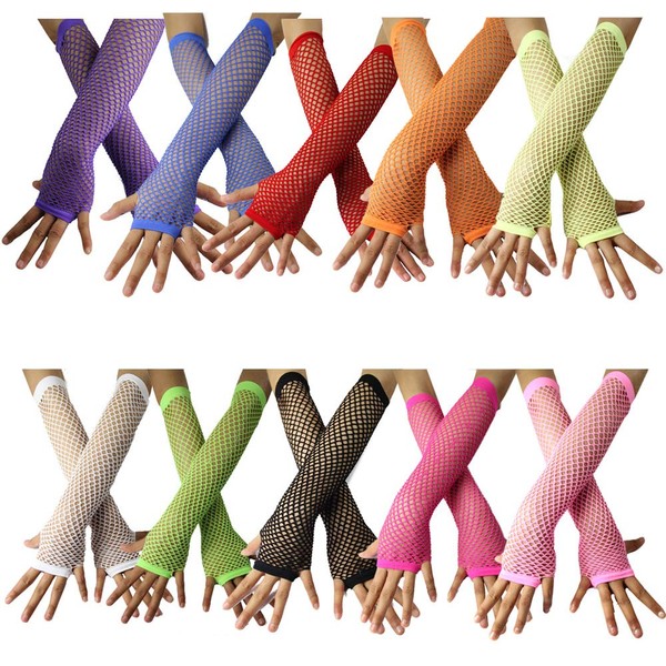 BundleMall 12pcs Set Womens Fingerless Fishnet Gloves Costume Party Accessories (Color a)